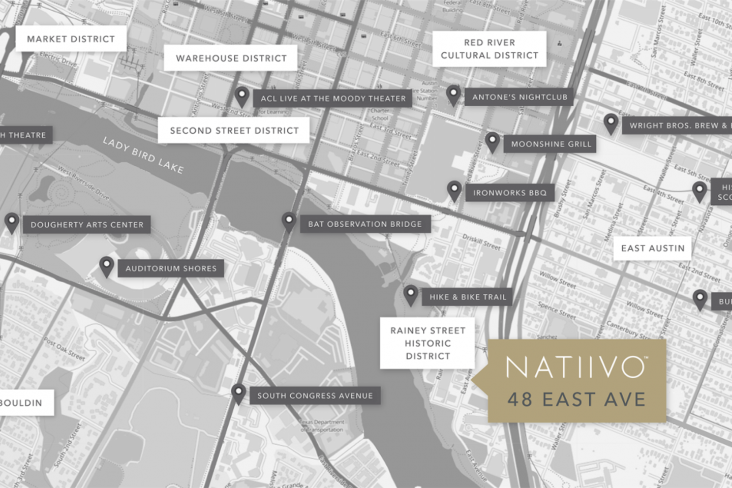 DESTINATIONS: - Austin Convention Center - Target (6 blocks away) - Whole Foods (6 blocks away) - Bars: Shangri-La, Violet Crown Social Club, Whistler’s, The Liberty, La Perla Bar, Grackle, The Upside, The Jackelope (Great burger), Native, The Eastern, Blind Pig Pub, Mooseknuckle Pub - BBQ: Franklin Barbecue, Micklethwait Craft Meats, (a little further out is) la Barbecue, Kerlin BBQ, Terry Black's Barbecue - Restaurants: Suerte, Via 313, Yellow Jacket Social Club, Tamale House, Counter Cafe, II Bruto, Casino El Camino (Heavy Metal Bar with an amazing burger), Koriente, Parkside, Prohibition Creamery, Kebabalicious, El Chilito (takeout), Revelry Kitchen and Bar - Live Music: White House (Live country), Historic Scoot Inn, Stubbs, ACL Live - Breweries: Zilker Brewery, Lazarus Brewing Co, Hops and Grain Brewing, (Blue Owl Brewery and Central Machine Works a little farther out) - Wright Brothers Brew and Brew - Fair Market (Events) - Chipotle, Snooze - Esther’s Follies, Velveeta Room (Comedy) Workout enthusiasts rejoice! Located on Lady Bird Lake and the Hike and Bike Trail. Stand-up paddleboarding, kayaking, canoeing, and boat tours are available. See the famous bats on Congress bridge during certain times of the year!
